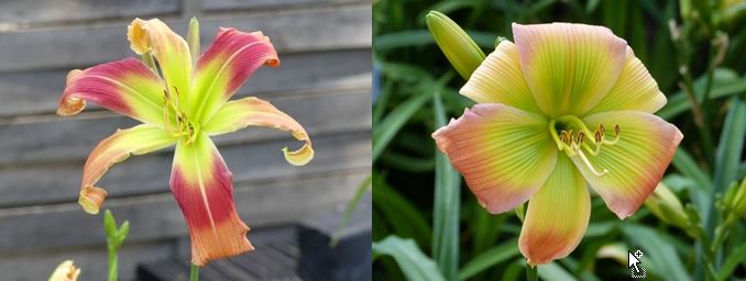 Semis H1817R. C'est une fleur remarquable. Sa couleur polychrome montre des touches de rose, de jaune, de vert, parfois des reflets nacrés. Sa texture est parfaite, tout comme ses ouvertures. Elle est perfectible au niveau de la croissance et de la quantité de fleurs. Super fertile. |