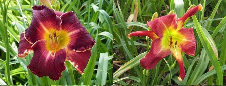 H1801e a une très forte croissance (14 tiges de fleurs au bout de 6 ans) et des fleurs rouges très régulières en qualité. Comme beaucoup de rouge, il est à placer à la mi-ombre. Des tiges bien droitées et regroupées forment un très bel effet de masse. |